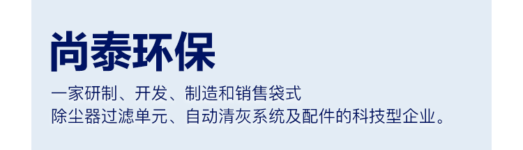上海尚泰環(huán)保配件有限公司創(chuàng)立于2006年5月,是一家研制、開(kāi)發(fā)、制造和銷售袋式除塵器過(guò)濾單元、自動(dòng)清灰系統(tǒng)及配件的科技型企業(yè)。